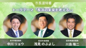 浅見のぶよしが新たな長浜の未来をつくります。どうか1票をお願いします。 ぜひ投票所へお出かけください
