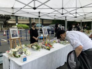 東京出張がありましたので、帰りに亡安倍元首相の献花台と記帳台に参列し、記帳等をしてきました。元首相のご冥福を心から祈りすると共に、このような事件が再度起こることがないよう、後に残る私たちが誓いを新たにすべきだと考えて記帳等をさせていただきました。事件の被疑者について、いろいろ報道がされていますが、どのような理由であっても、今回の事件を正当化することは出来ません。そして、模倣犯が出ないことが強く望まれます。会場は参列者が多く、むし暑い会場で自分の番がくるまで待ちましたが、その間、いろいろなことを考えさせられました。