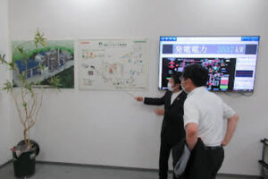 長浜市の隣の米原市には、木質バイオマス発電をしている木材会社のグループがあります。木質バイオマス発電とは、廃木材や木屑などの木材チップを燃料として利用し、発生した蒸気でタービンを回して発電するものです。木材がCO2を吸収するので、燃焼させた際に発生するCO2と差し引き、大気中のCO2が増えないことになります。再生可能エネルギー発電の一つです。この発電所では、約3,550kWの電力を発電し、約8000世帯の電力使用量をまかなうことができます。これは、人口が約4万人の米原市の半分程度の人口の使用量に当たります。この会社のグループは、他に水力発電もしており、約700kwの電力を発電しています。売電先の問題はあるのですが、米原市は、計算上はエネルギーの地産地消に近づいているのではないかと思います。長浜市も、風力、木材、太陽光、小水力などを使って、エネルギーの地産地消を目指したいと思います。