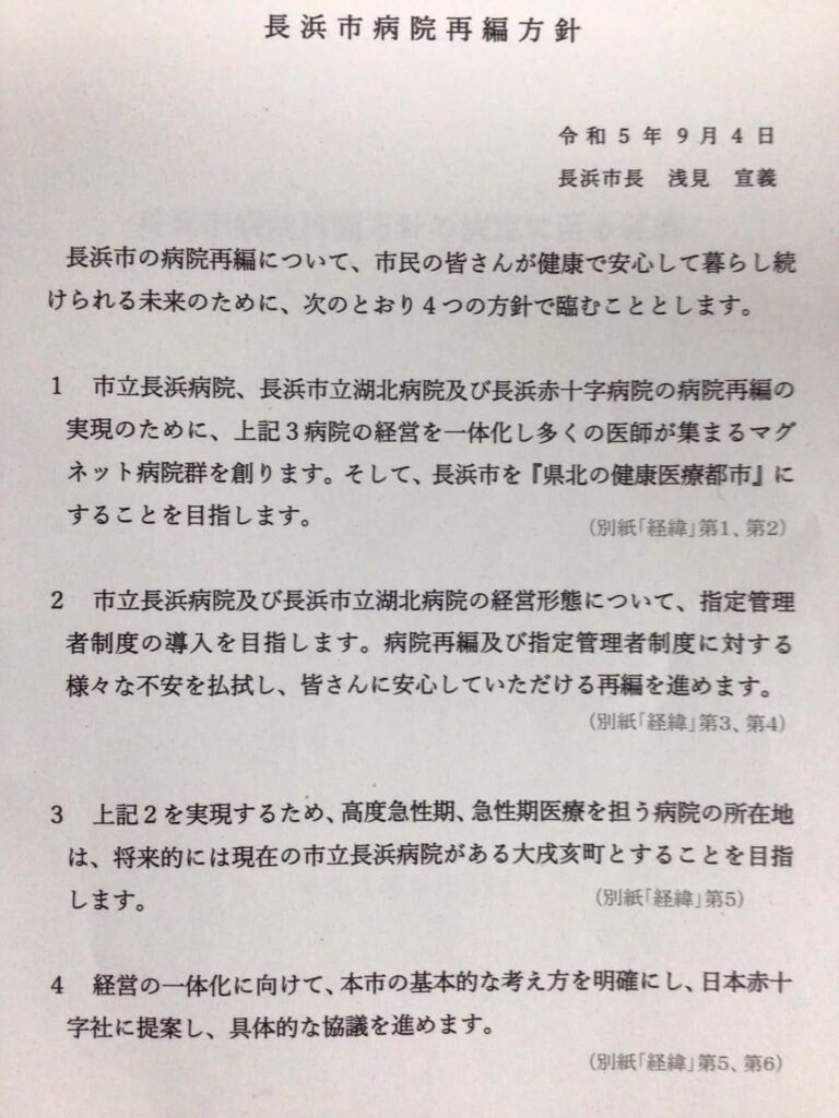 長浜市病院再編方針の発表