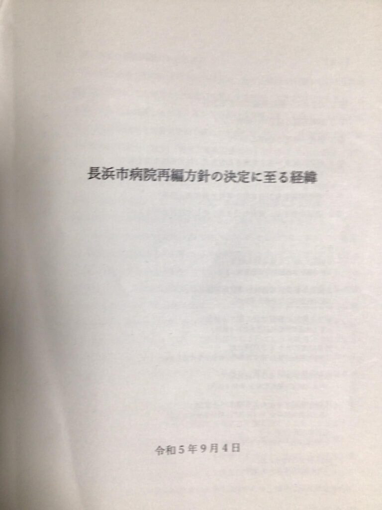 病院再編の方針を示し、当該方針をYouTubeで紹介しています。併せて、方針決定に至る経緯を詳細に説明した文書を紹介します。いずれも市会議員やマスコミ各社に配布させていただいております。そして長浜市のホームページにおいて広く公開しています。是非ご覧下さい。