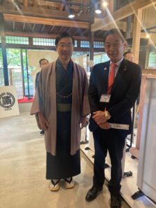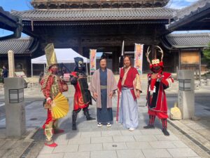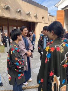 14日も様々なイベントが長浜で開催されました。秋の曳山巡行は、春の曳山祭りを彷彿させるもので良かったです。シルクのまちづくり市区町村協議会のメンバーの人達と、長浜の誇る見送り幕を見させてもらいました。仏壇様式の曳山の珍しさ、豪華さもあって、メンバーの人達は感激してくれたようでした。この曳山巡行には、東京大学の学生が6人来て、体験学習をしてくれました。みんな、前日の準備から、当日の曳行も参加して、とても嬉しかったようで、私と立ち話ですが歓談してくれました。浜ちりめん展示会も行われ、シルクのまちづくり市区町村協議会のメンバーの人達と拝見しました。写真は、昨年のシルクのまちづくり市区町村協議会の会長である茨城県の山本結城市長とです。結城市とはシルクの縁で良い関係ができそうです。長浜着物大園遊会も行われ、各地から武将姿の応援団も来てくれました。一緒に写真を撮れましたが、公務があって大園遊会のトークと抽選会に参加できず、とても残念でした。