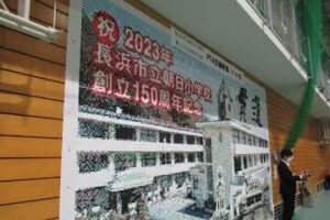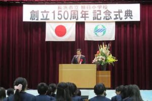 母校の長浜市立朝日小学校の創立150周年記念式典が開催されました。来賓として招かれ、在校生らと共に何十年かぶりに校歌を歌い、懐かしい思いに浸らせていただきました。その創立150周年の記念誌「貫道」をいただいたのでパラパラめくっていると、いやびっくり‼️。母校の元となる一番古い小学校である「培達(ばいたつ)学校」の創設の責任者として、私の曽祖父(ひいおじいさん)である「浅見義隆氏」が掲載されていました。小さい頃から実家で遺影を見ていたご先祖様にこんなところで出会うとは思わなかったです。記念式典に参列できたことや、市政で今教育改革に取り組むことは、何やらご縁を感じました。