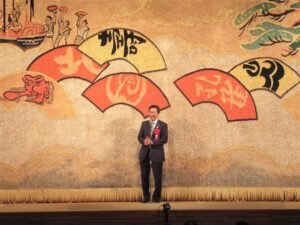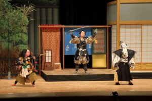 春の曳山祭りの子ども歌舞伎と、それを支える振付け、太夫、三味線の三役の発表会です。450年戦国フェスティバルの関連事業として行なわれました。子ども歌舞伎の演目は、「絵本太功記~尼ヶ崎閑居の場」で、本能寺の変以後の光秀公と秀吉公の対立をデフォルメしたような内容で、まさに戦国を感じさせるものでした。とても良かったです。春以外にも、これが観れるのは幸せでした。