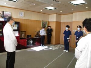 能登半島地震への対応として、建築士と看護師を派遣するため、激励会を開催しました。いずれも明日の出立です。建築士には、「日頃鍛えている専門的な知識や技術を生かすべき時です。困難な状況下こそ、日頃の鍛練の成果が出ます。能登の皆さんのために力を尽くしてきて下さい」とお伝えしました。看護師には、市立長浜病院長が激励し、公務が重なった私は後で激励文を届けました。