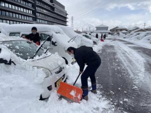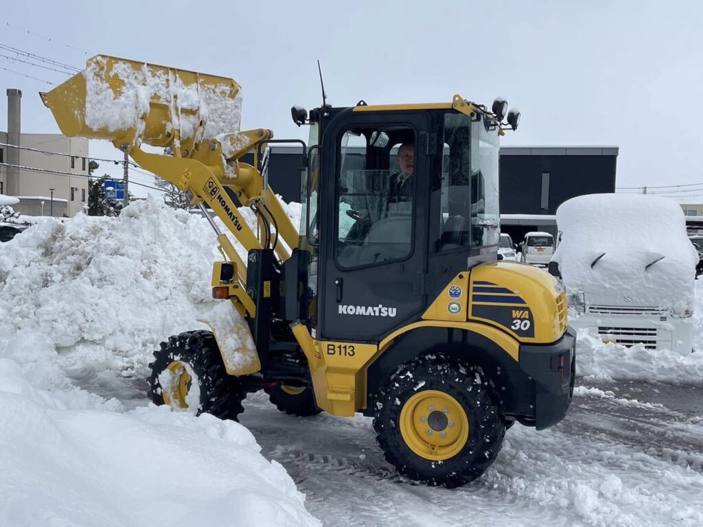 写真は朝から除雪で頑張ってくれている職員です。町中の人たちにも除雪作業をしていただいています。感謝、感謝です。