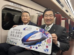 3月16日の開業に先駆けて、北陸新幹線の試乗会がありました。金沢敦賀間が1時間を切ります。長浜を含めた経済効果が期待されます。周辺地域の経済を活性化させ、能登の支援がさらにできるように頑張りましょう。