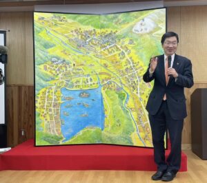 先日完成お披露目会がありました。丹生ダム中止に伴う地域整備事業の一環です。嫁入り行列、田んぼのはさがけ、行商のお婆さんなど昔懐かしい行事や生活の風景などが描かれています。余呉地区を中心に描かれたものですが、今後は片岡地区、丹生地区のものも作られるようです。楽しみです。