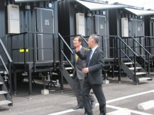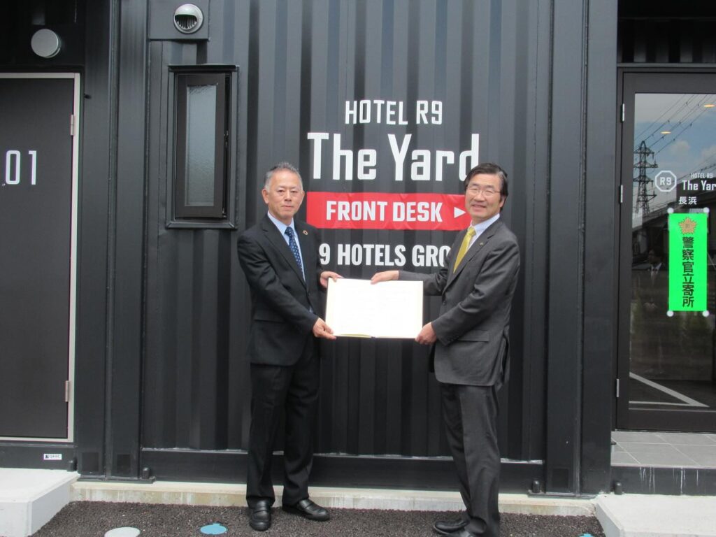 昨年12月に、コンテナ利用のビジネスホテルが長浜市南高田町にできた時には驚かれた方も多いでしょう。このホテルは災害時にトラックで迅速に運ぶことができ、避難所や宿泊施設として活用出来ます。この度、ホテル設置の株式会社デベロップ様と災害時の提供に関する協定が締結出来ました。自助、共助、公助と合わせて、「民助」も活用して災害に強いまちづくりを目指します。