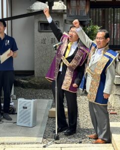 秀吉公が近世城下町の基礎を作った滋賀県長浜市で、他の城下町との連携も目指したふるさとまつりが行われました。今年は、上田市長をはじめとした奈良県大和郡山市の方が何人も参加いただきました。再来年の大河ドラマ「豊臣兄弟」を一緒に盛り上げるためです。大和郡山市は金魚のまちで有名で、金魚すくいのブースも設けていただきました。勧められて、大好きな金魚すくいに挑戦しましたが、今日は何故か逃げられてしまいました。残念無念