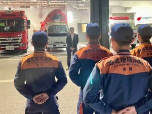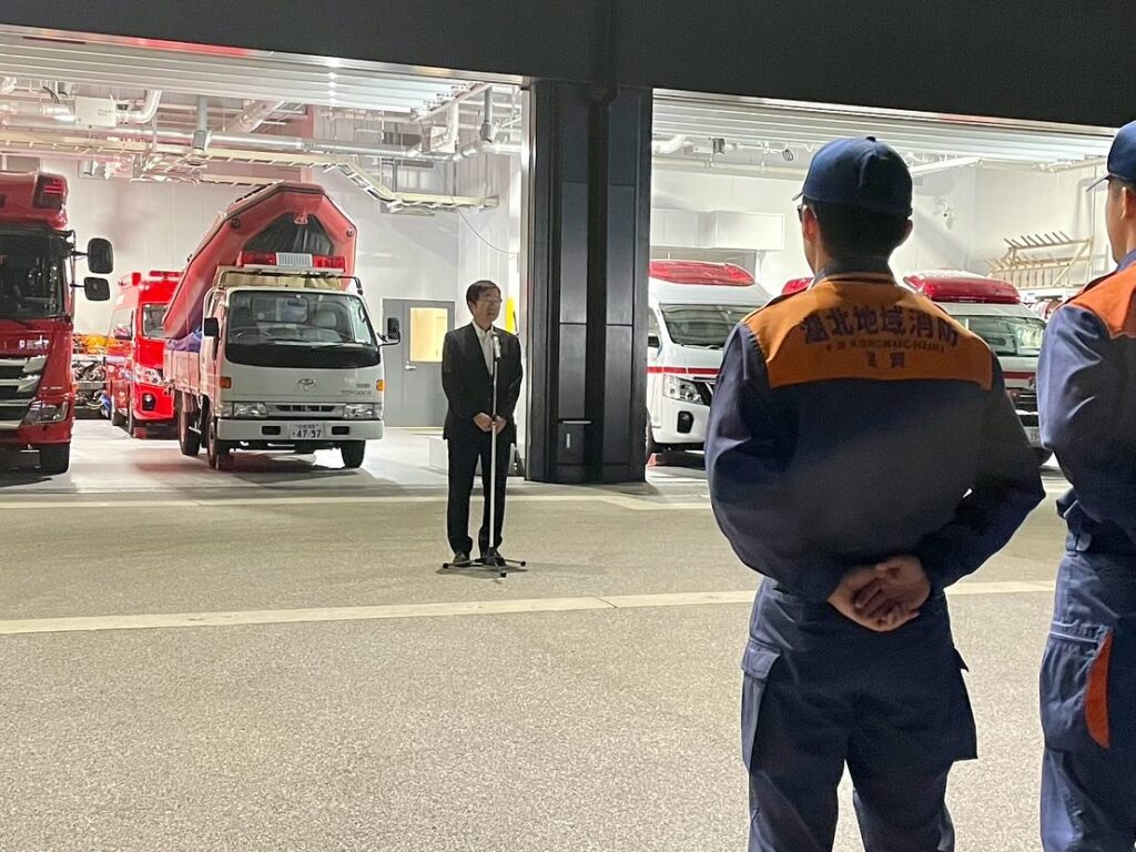 能登の大雨被害に対する、湖北地域消防本部の救助隊が20時頃帰隊しました。9月21日から24日まで輪島市で活動をしてきてくれました。塚田川周辺でも活動してくれたようです。現地の悲惨な状況を聞き、遠くからですが被災者の方々にお見舞いを申し上げると共に、救助隊の皆さんを労っていました。今朝には、第二陣が出発しました。米原市長と共に送り出しました。