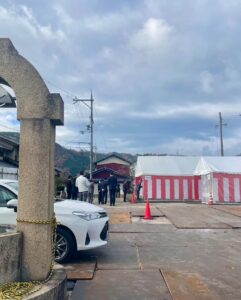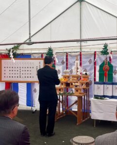 尖塔の東阿閉公民館が解体され、新たな公民館のための地鎮祭〜長浜市高月町東阿閉