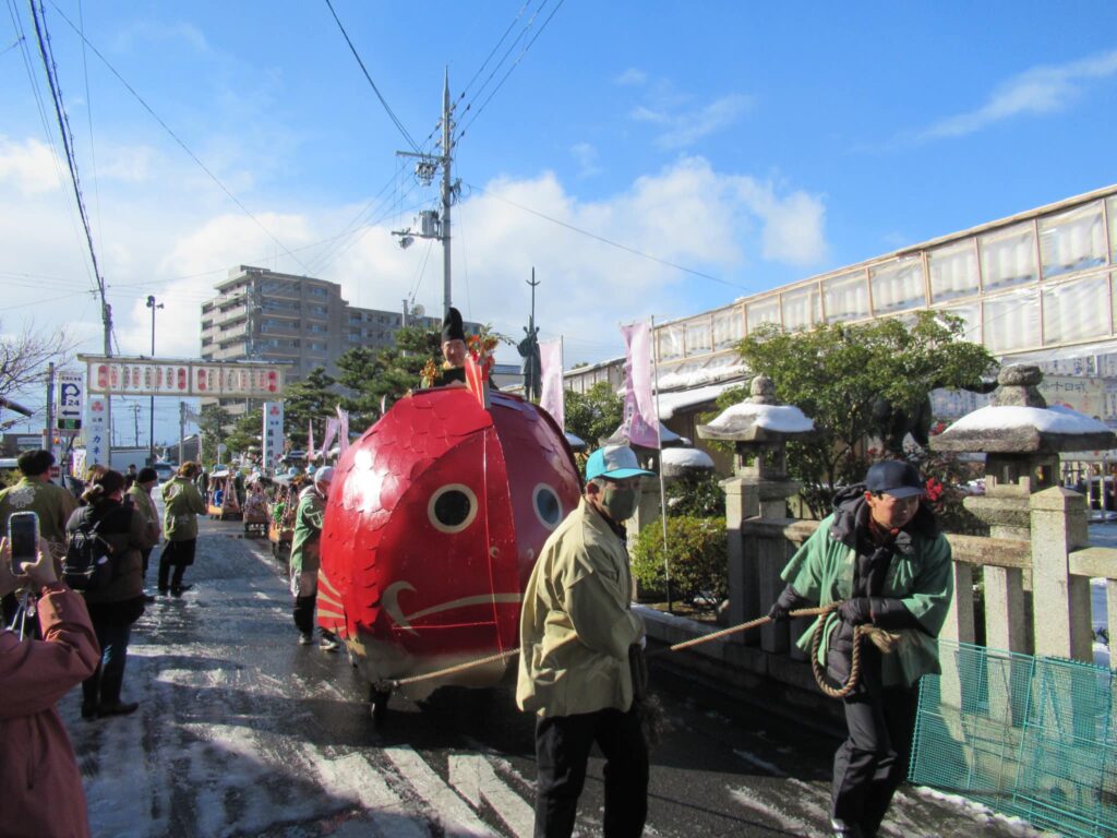 雪で経路が変更になりましたが、今年も無事えべっさん(えびす様)の役割が果たせました。長浜市の商店街が商売繁盛で、今以上に賑やかになるといいですね。なお、長浜市では、えべっさんは秀吉公の化身です。江戸時代には徳川家に配慮して公には秀吉公を拝めなかったので、長浜ではえべっさんを秀吉公の代わりに拝んでいたと言われます。