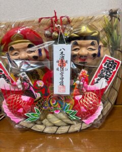 長浜市八木浜町の十日戎は近畿最北のえべっさんだそうです。そこでも餅まきをさせていただきましたが、小さいころ可愛がってもらった叔母さんに会いました。二人で久しぶりと懐かしがっていました。叔母さんのご友人が誘ってくれたそうです。叔母さんにも会えましたし、今年はいいことがあるかなと期待し、大きな福箕(ふくみ)を買い求めました。