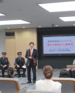 鉄道を活かした湖北地域振興協議会主催です。小学生に鉄道や駅に親しみを持ってもらうのを目的としています。協議会長賞🏆は、「おまつり、行くよー!」です。実に可愛い😍写真ですね。