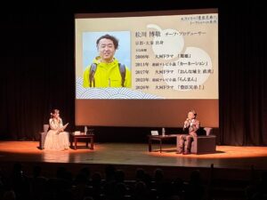 NHKの松川プロデューサー等をお招きしての機運醸成のイベントです。450人の会場がほぼ満席になり、関心の高さを感じました。松川プロデューサーは、「長浜は歴史が動いたまち。豊臣兄弟にとって、長浜時代は一番幸せで、活力があり、前を向いていた時代」と評されいました。大河ドラマでの長浜市の取り上げが期待されます。なお、松川プロデューサーは、小谷城や木之本のサラダパンなどもお好きなようでした。