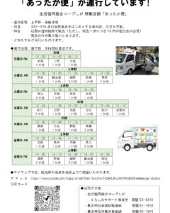 長浜市の買い物支援の移動販売車(余呉、びわ、西黒田など9地域で展開中)が、市立図書館の返却本を集めてくれます。実証実験の後に本格運用ができればと思います。移動販売車に付加価値のある機能が追加できれば、お年寄りや車が運転できない方にもどんどん便利な長浜市になりますね。より高みを目指したいものです。