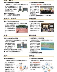 今年度も各分野で、長浜市が元気になる改革を進めます。万博夢プロジェクト、スポーツによる健康増進事業、パパ・ママリフレッシュ託児事業、DX推進事業、北近江豊臣博覧会開催事業、南長浜まちづくり推進事業など目白押しです。