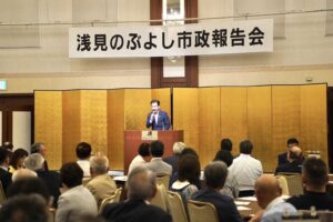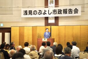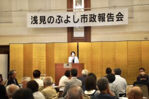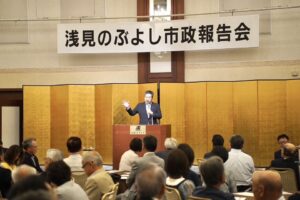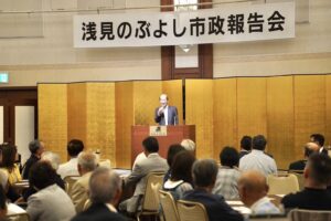 には市政報告会を開くことができ、沢山の方に来ていただき、感動しました。その一端を感謝をこめて、メッセージをいただいた皆さんにお知らせします。石破首相からもビデオメッセージをいただき、私のことを「友人」と言っていただきました。
