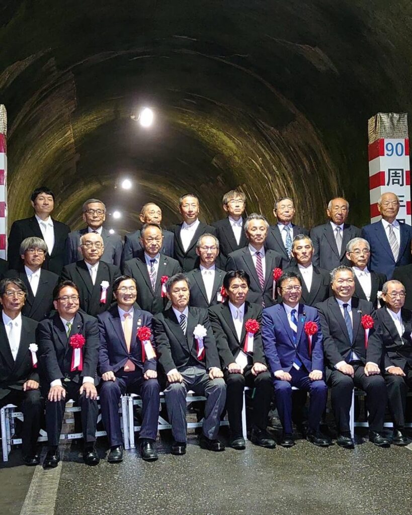 長浜市郷野町にある隧道で、昭和10年付近住民の悲願として作られました。その90周年に、長浜から約75年ぶりに大臣になられた上野議員が来られました。隧道の90周年と上野大臣の就任で、会場は二重の喜びに包まれました。