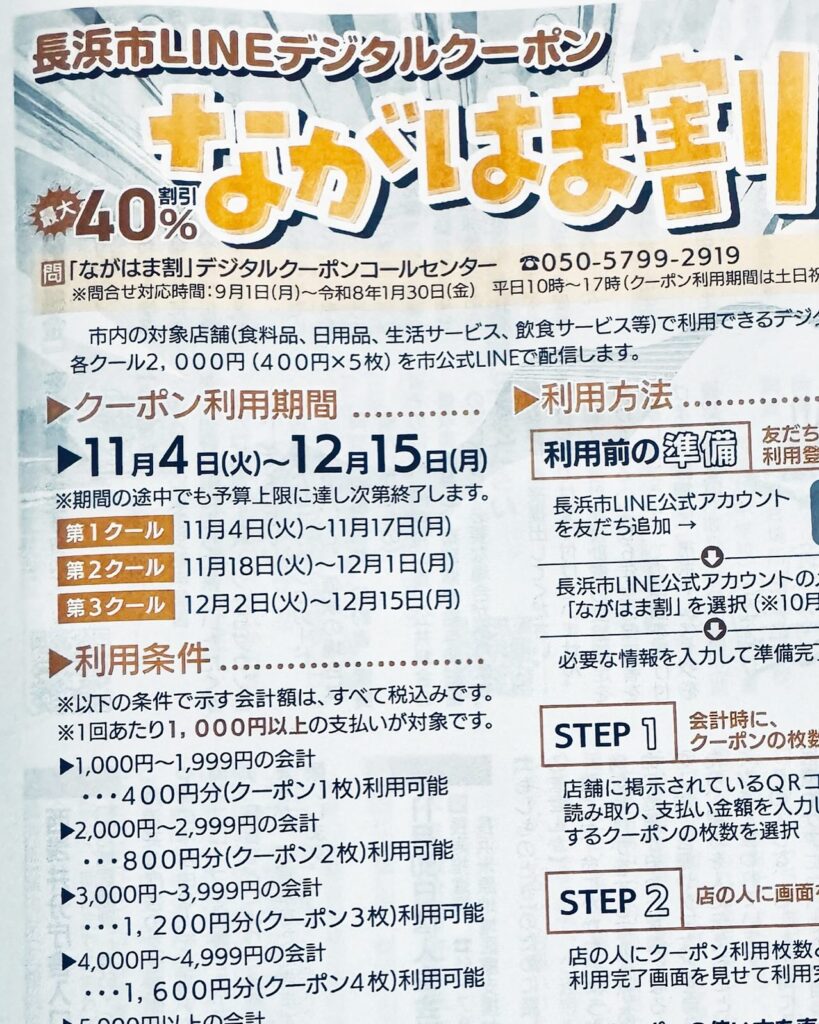40%割引き〜史上最大級のデジタルクーポン事業「ながはま割」(長浜市の今日の一推し)