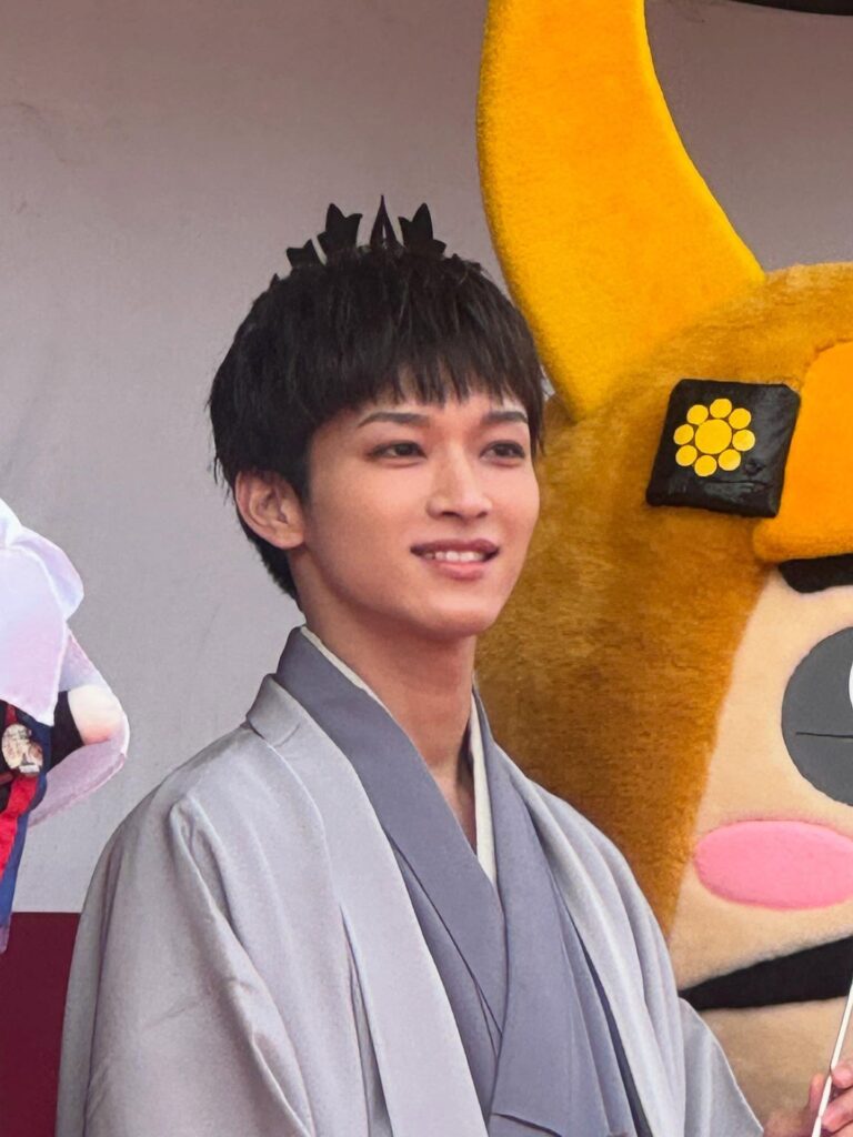 令和8年の大河ドラマ「豊臣兄弟」で石田三成公を演じる松本怜生(れお)さんが参加していただき、大変な盛り上がりでした。ドラマで凛々しい三成公を演じて欲しいですね。三成祭では地元の上野厚生労働大臣も駆けつけていただきました。