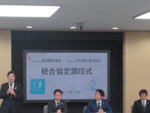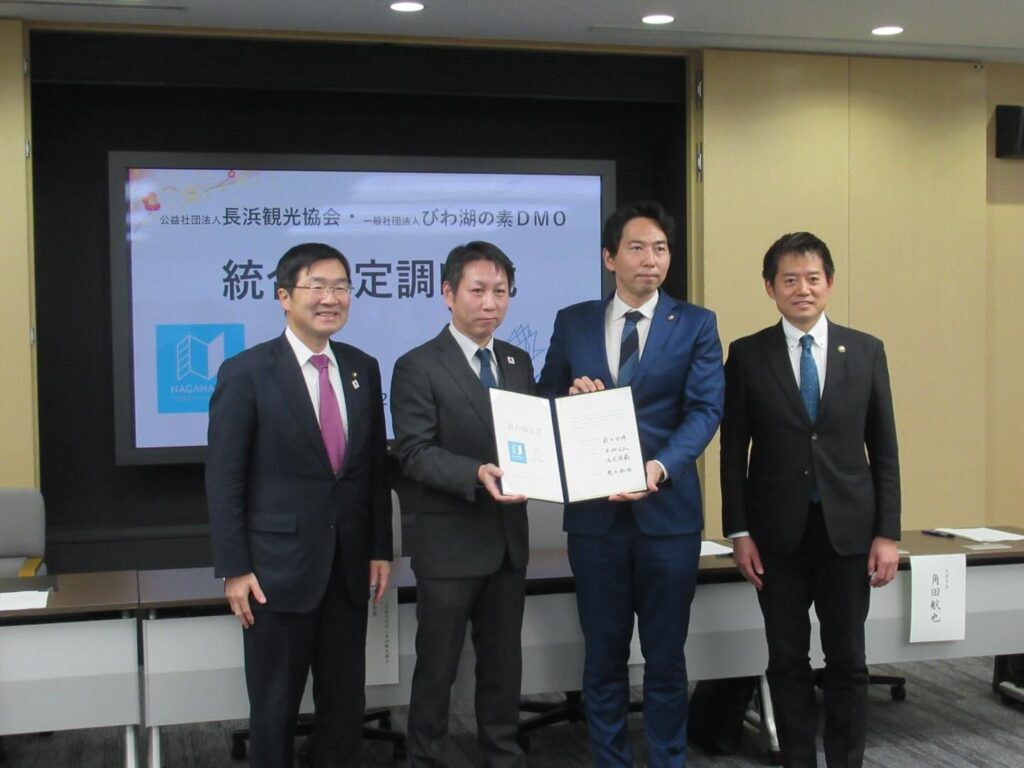 長浜観光協会・びわ湖の素DMO 統合協定調印式 (長浜市の今日のイチ推し)