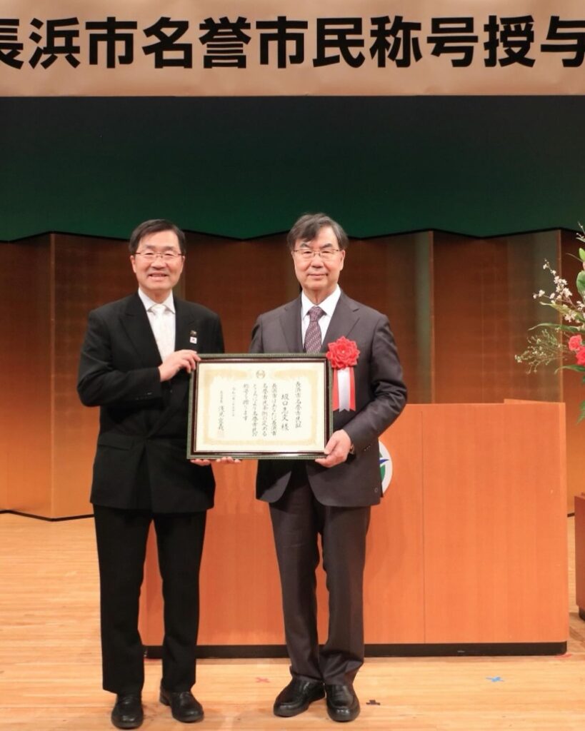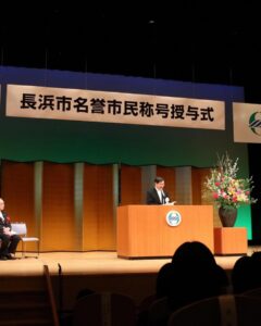 合併後は名誉市民第1号です。先生、おめでとうございます。長浜市民にとっても名誉なことです。
