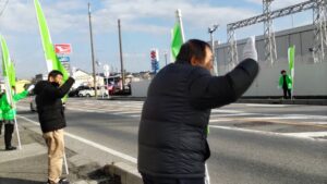 お忙しい中、車内から手を振り返してくださる方、会釈をしてくださる方。皆様の一つひとつの反応が、寒さの中で活動する私たちチーム全員の大きな励みになっています。本当にありがとうございます!
