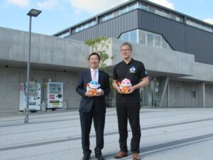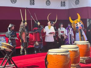 初代城主の「ひでよし君」と共にお祝いをしました。映