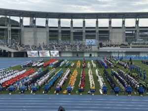 開会行事は、全国の代表が集まり、壮観でした。男子予