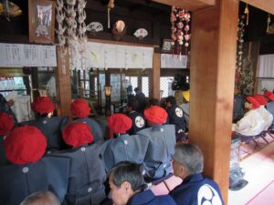 赤の被り物は還暦(60歳)、黄色の被りは古希(70