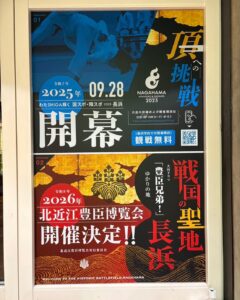 【長浜市の今日のイチ押し!!(拡散、シェア希望)】 長浜駅のポスター〜今年の国スポ、障スポ開催。来年の大河ドラマを機縁とする北近江豊臣博覧会開催。